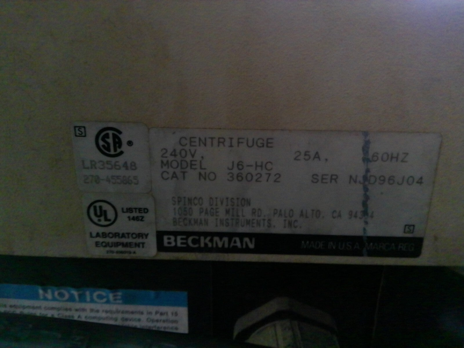 Beckman J6-HC Refrigerated Floor Centrifuge w/ JS-4.2 Rotor & Buckets 240v FULLY TESTED