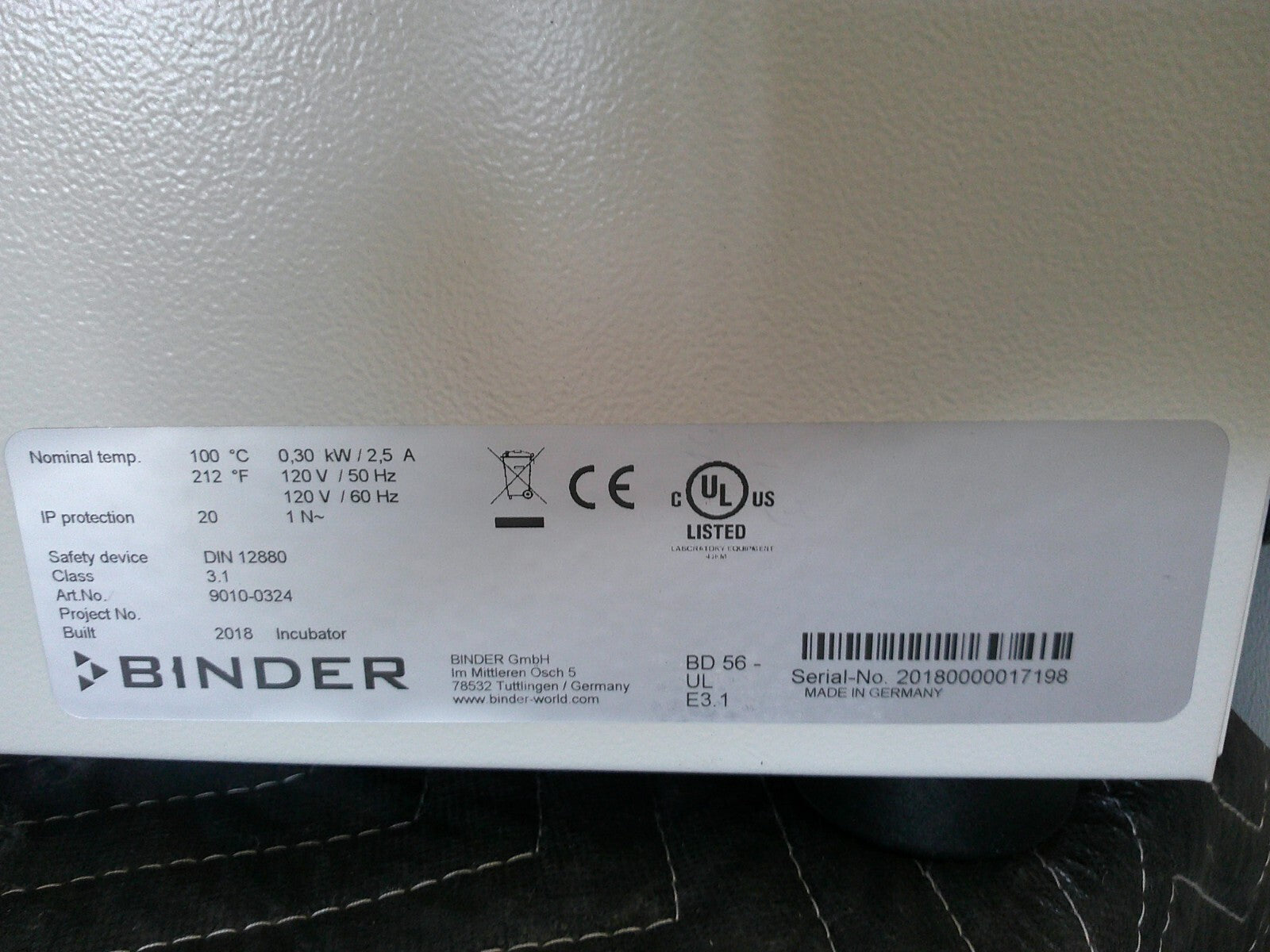 Binder 9010-0324 BD 56 Standard Incubator Gravity Convection Oven 2Cf 120v FULLY TESTED