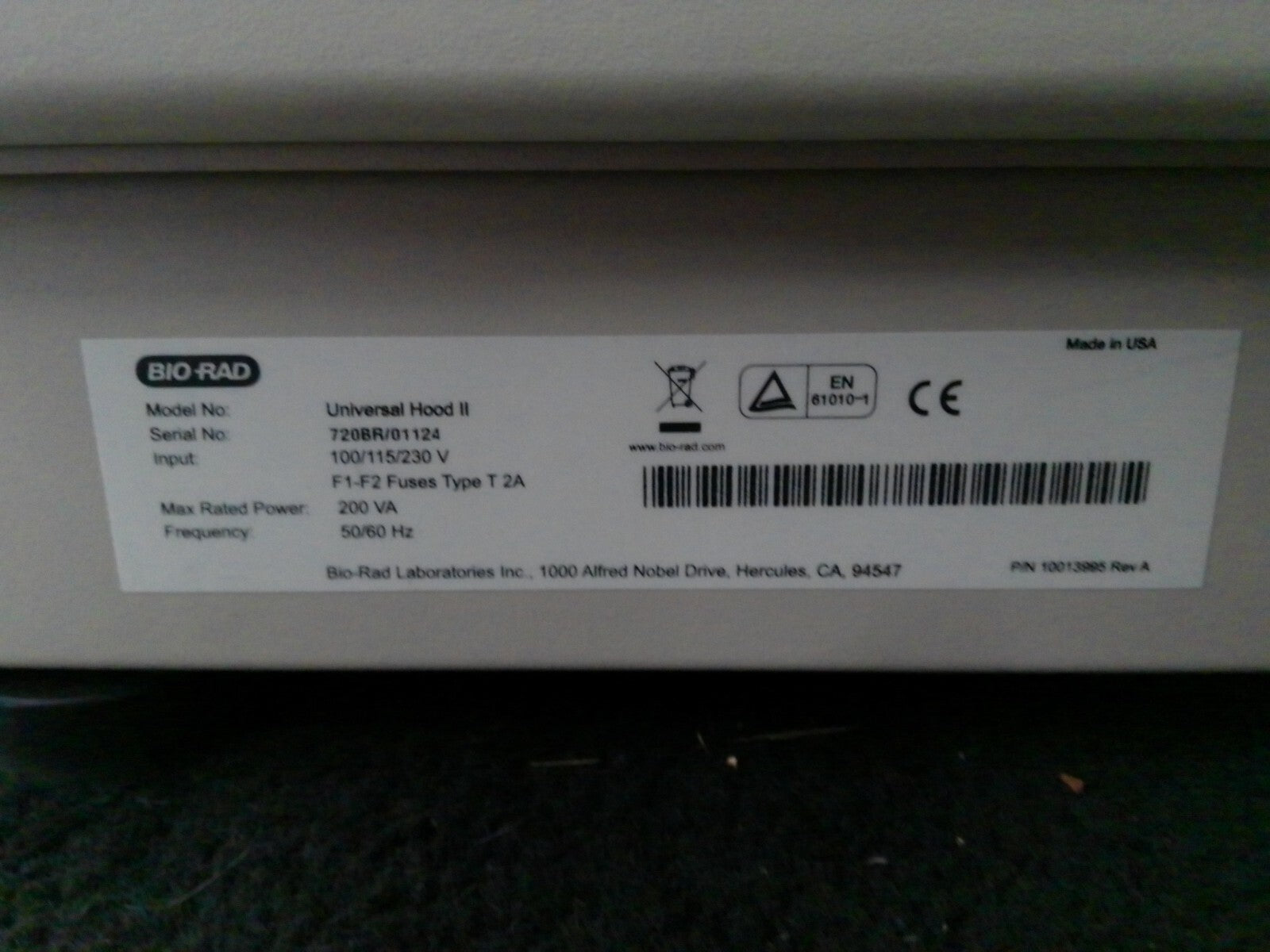 Bio-Rad Universal Hood II Gel Molecular Image System w/ Camera & CPU