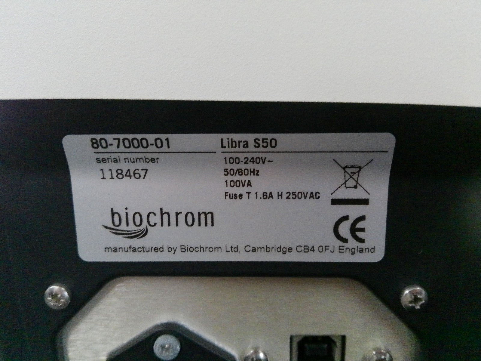 Biochrom Libra 80-7000-01 S50 UV/Vis Spectrophotometer 120v FULLY TESTED