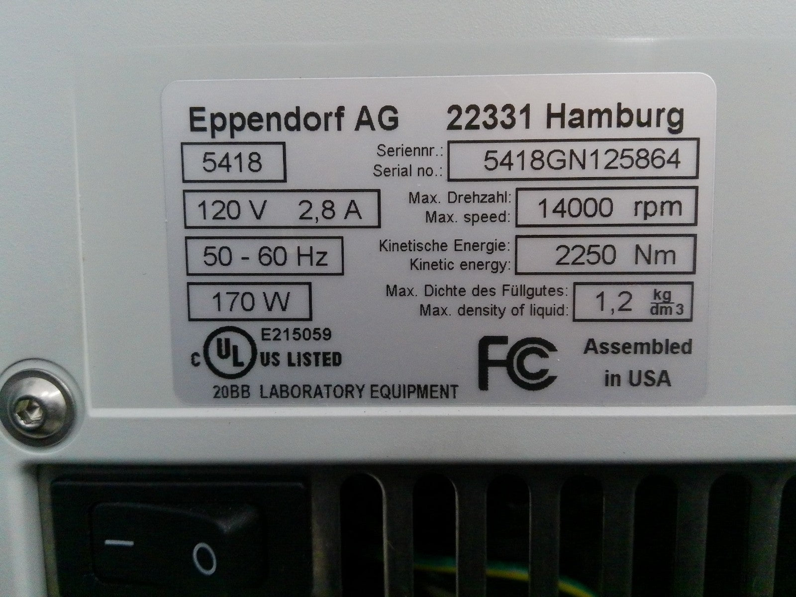 Eppendorf 5418 Benchtop Microcentrifuge w/ FA-45-18-11 Fixed-Angle Rotor FULLY TESTED