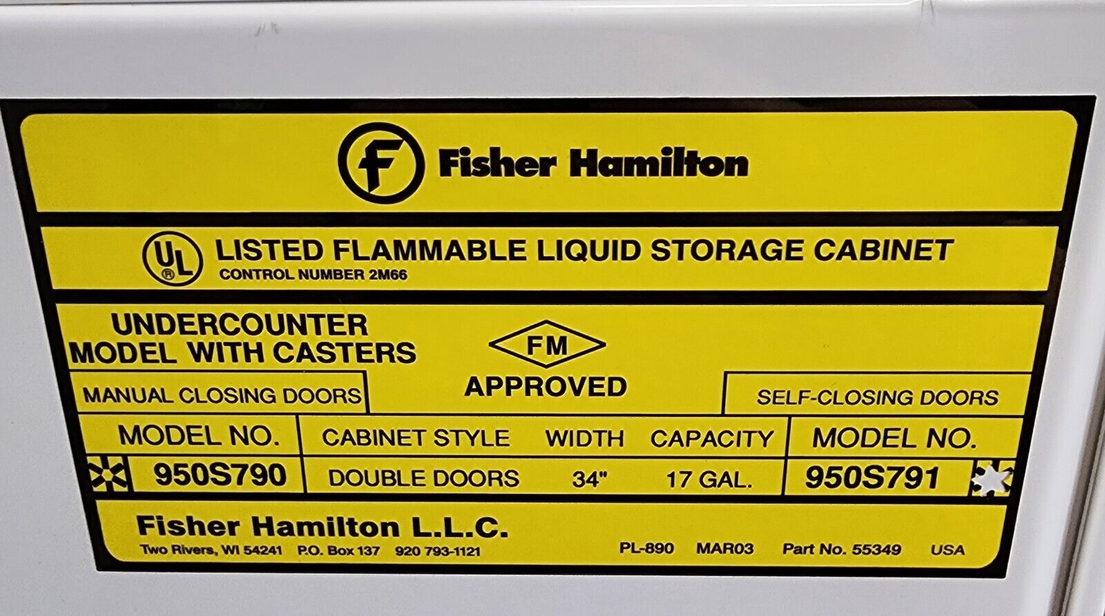 Fisher Hamilton 950S791 Flammable Storage Cabinet w/ Self Closing Doors 17 Gal.