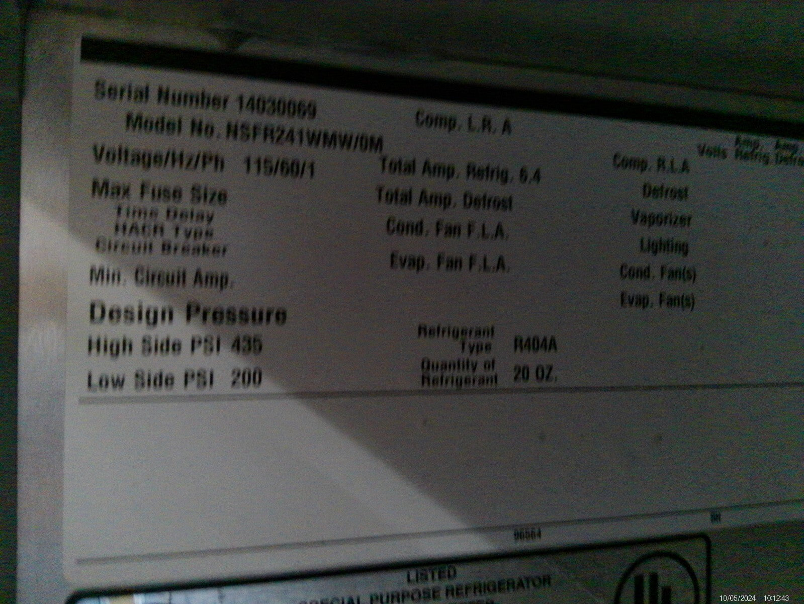 The Norlake Scientific Flammable Material Refrigerated Storage, Model NSFR241WMW/0M is a 24.0-cubic-foot refrigerator with a temperature range of 2°C to 10°C for the storage of flammables in approved containers for Class I, Division 2 Storage of Flammable Liquids per NFPA Standards, 70, 99, 45, 497A, UL471.