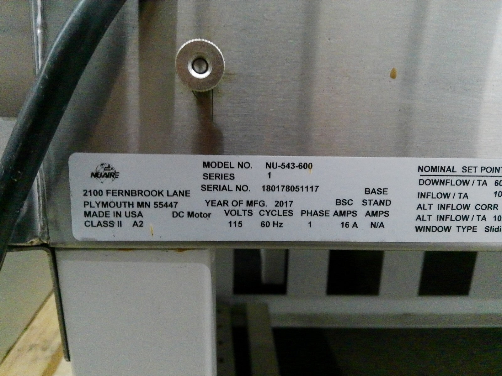 Nuaire 6ft NU-543-600 A2 Biosafety Cabinet w/UV & Stand FULLY TESTED