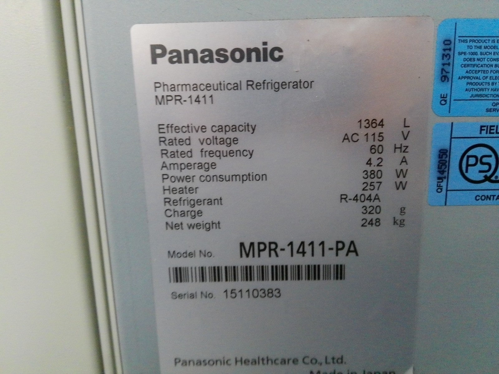 Panasonic MPR-1441-PA Double Door Pharmaceutical Refrigerator 48Cf (2015) 120v