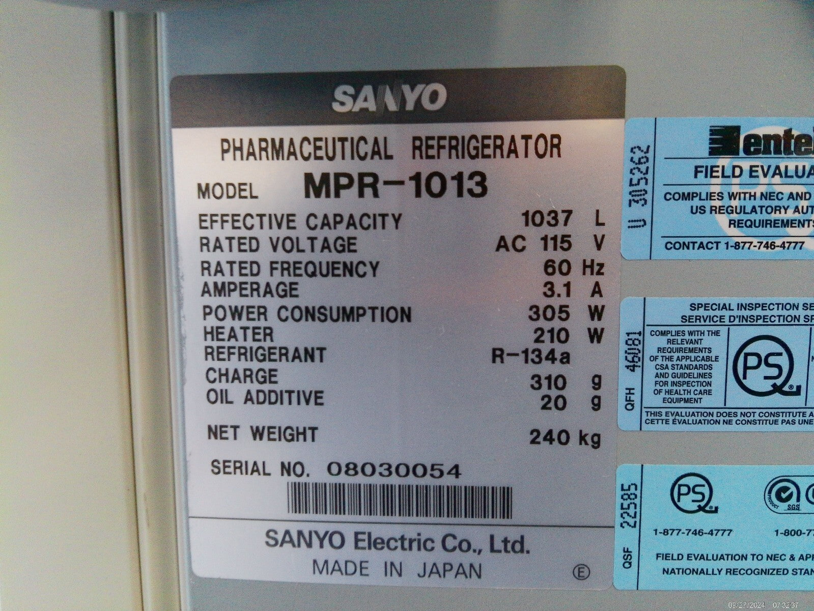 Sanyo MPR-1013 Medicool Pharmaceutical Refrigerator +2C to +14C FULLY TESTEDs/n 08030054