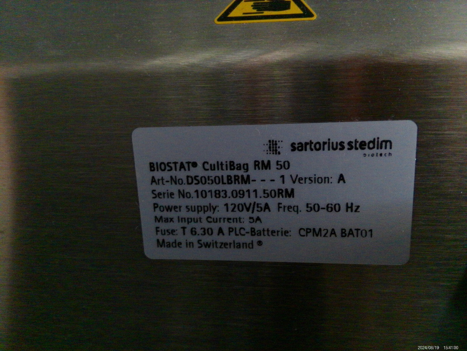 Sartorius DS050LBRM BIOSTAT BR-006 CultiBag RM50 Bioreactor w/Extra Platform & Lid