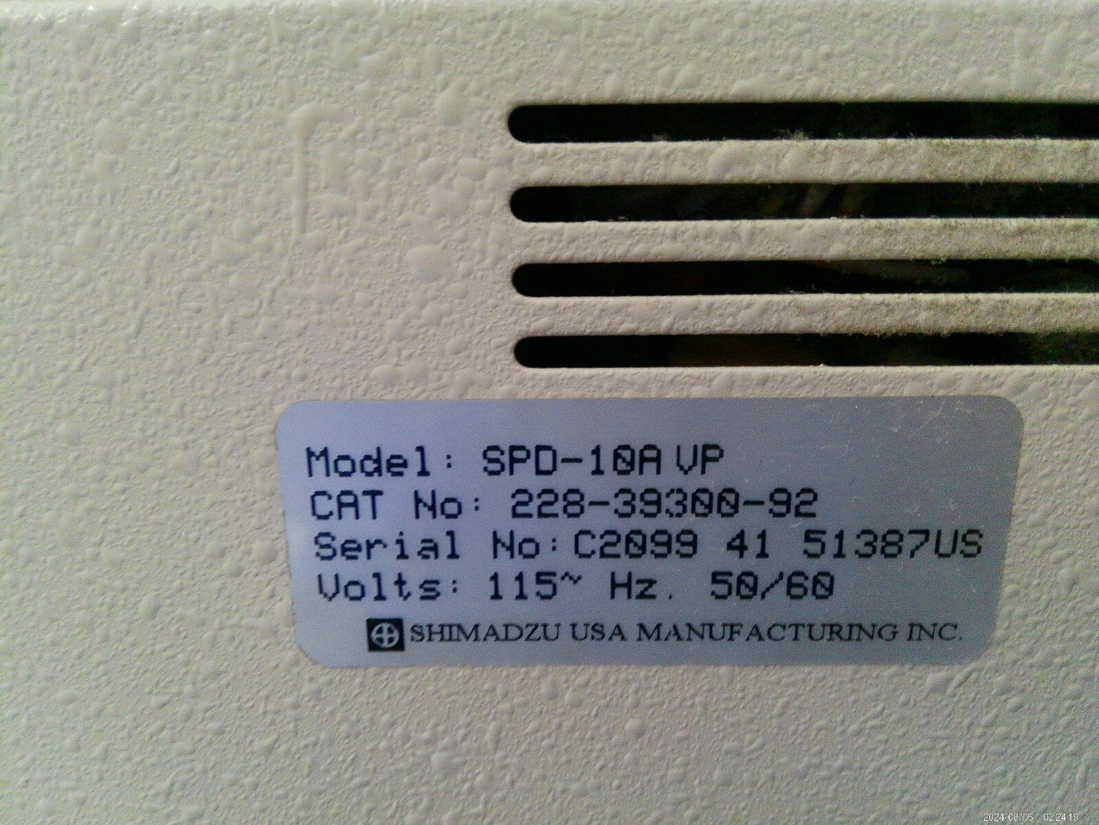 Received equipment from a working laboratory when purchased.