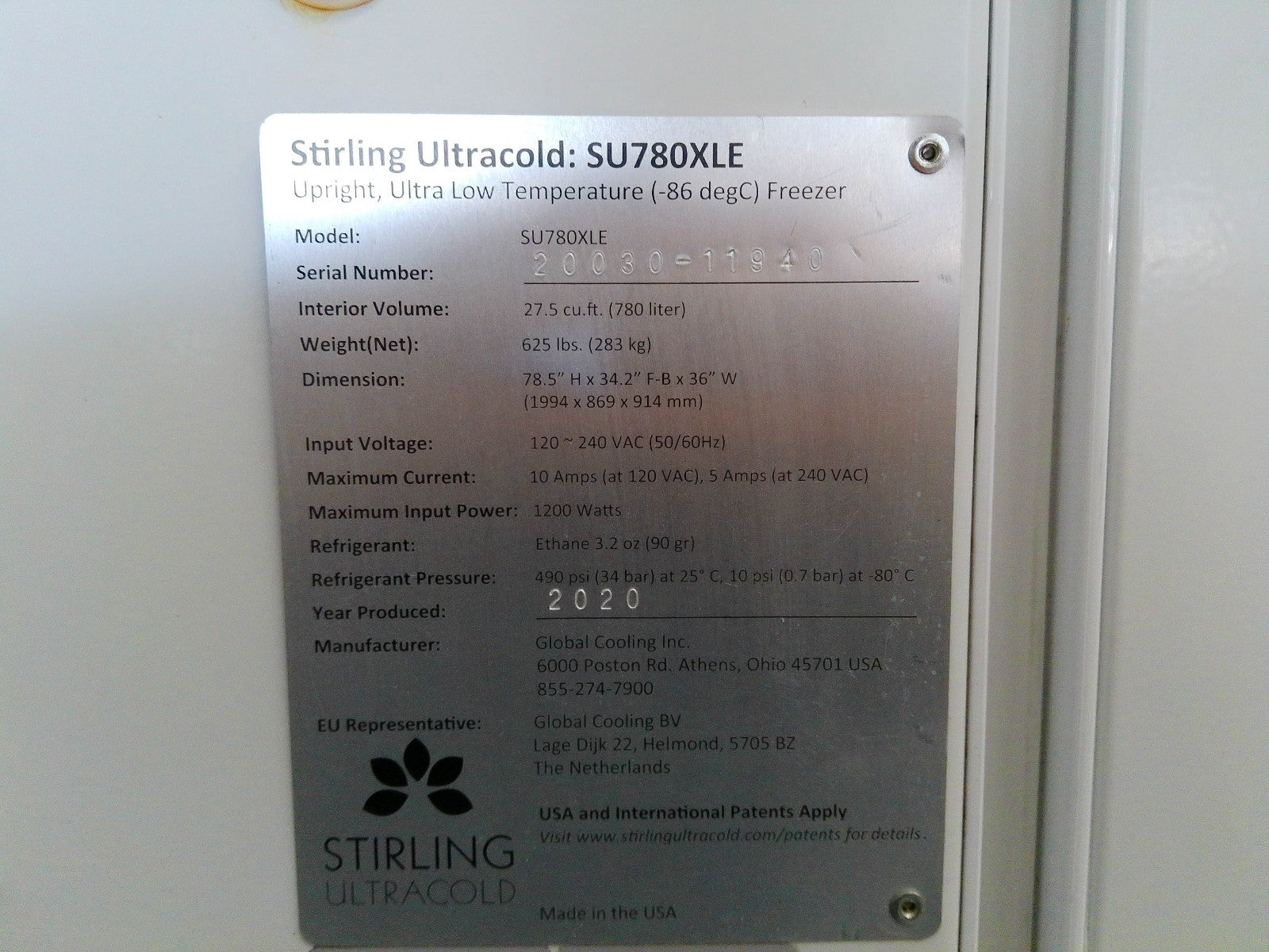 Stirling Ultracold SU780XLE -86C Ultra Low Freezer 27.5Cf (2020) FULLY TESTED