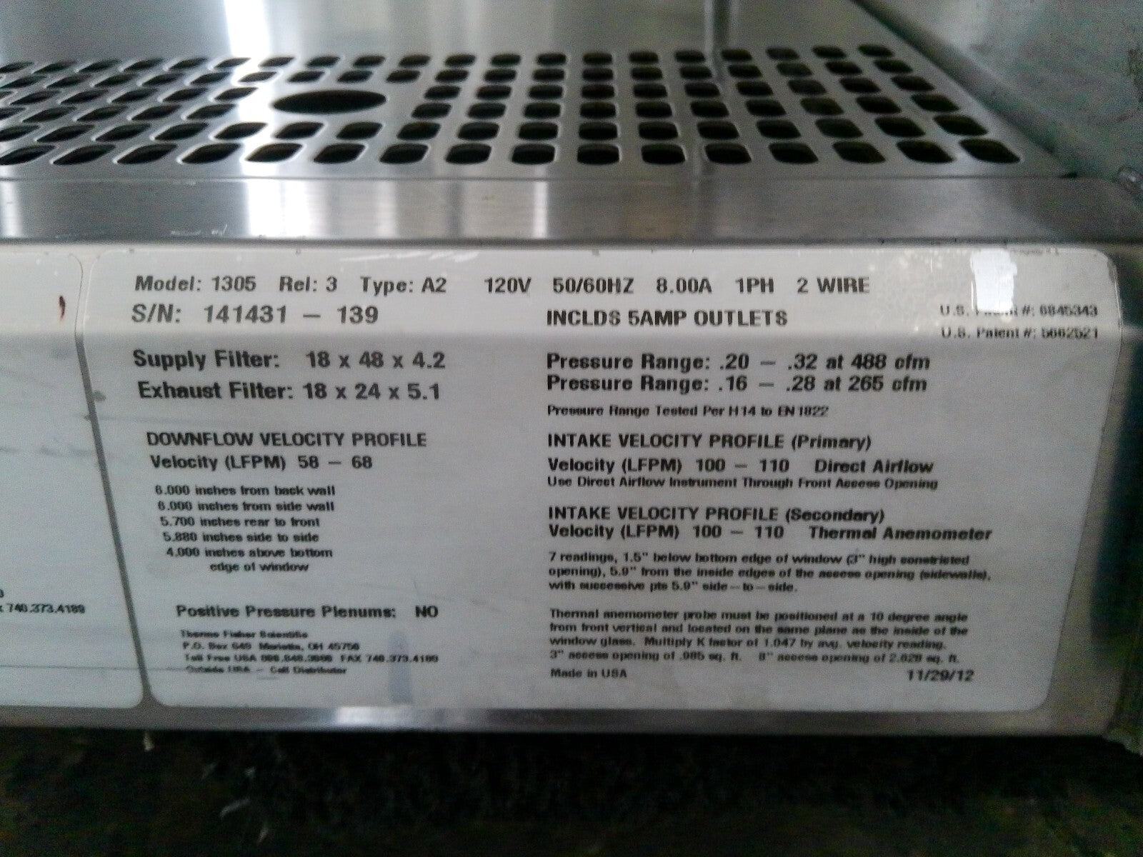 Thermo Scientific 4ft 1305  A2 Biosafety Cabinet w/UV & Stand FULLY TESTED 2012