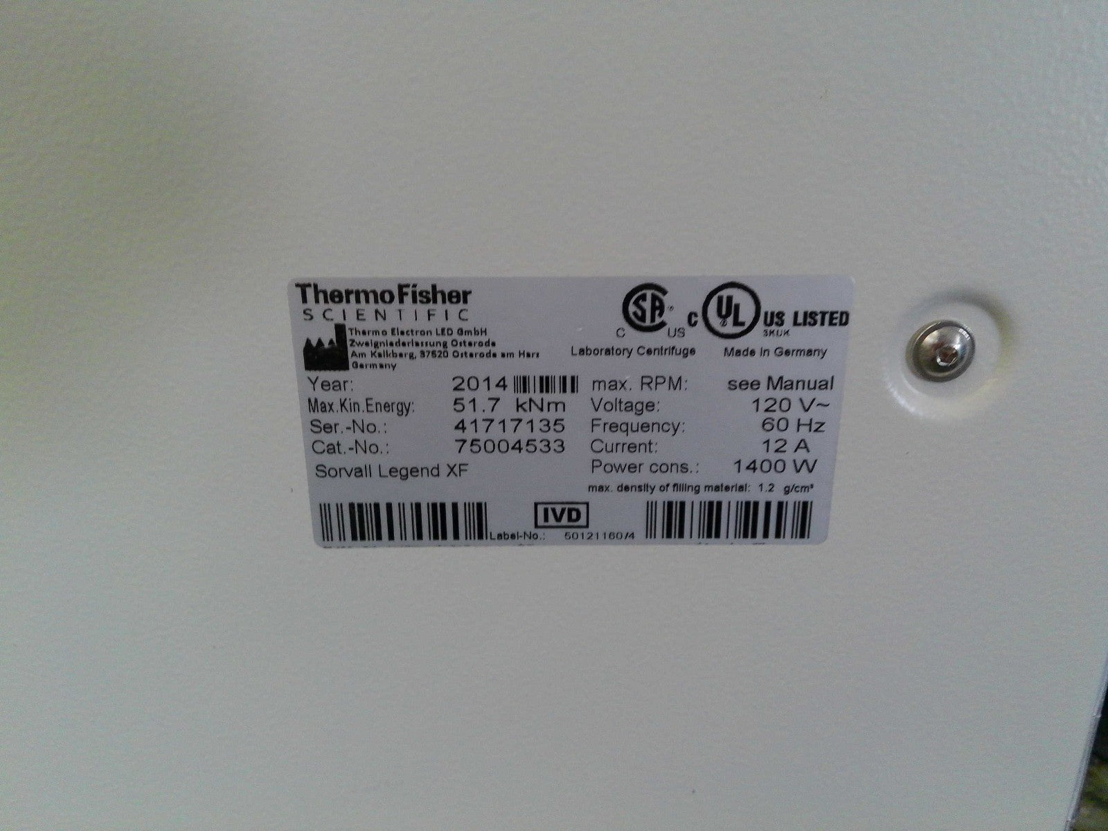 Thermo Sorvall Legend XF Floor Centrifuge w/ Rotor (TX-1000), Buckets, & Inserts 120v FULLY TESTED 2014