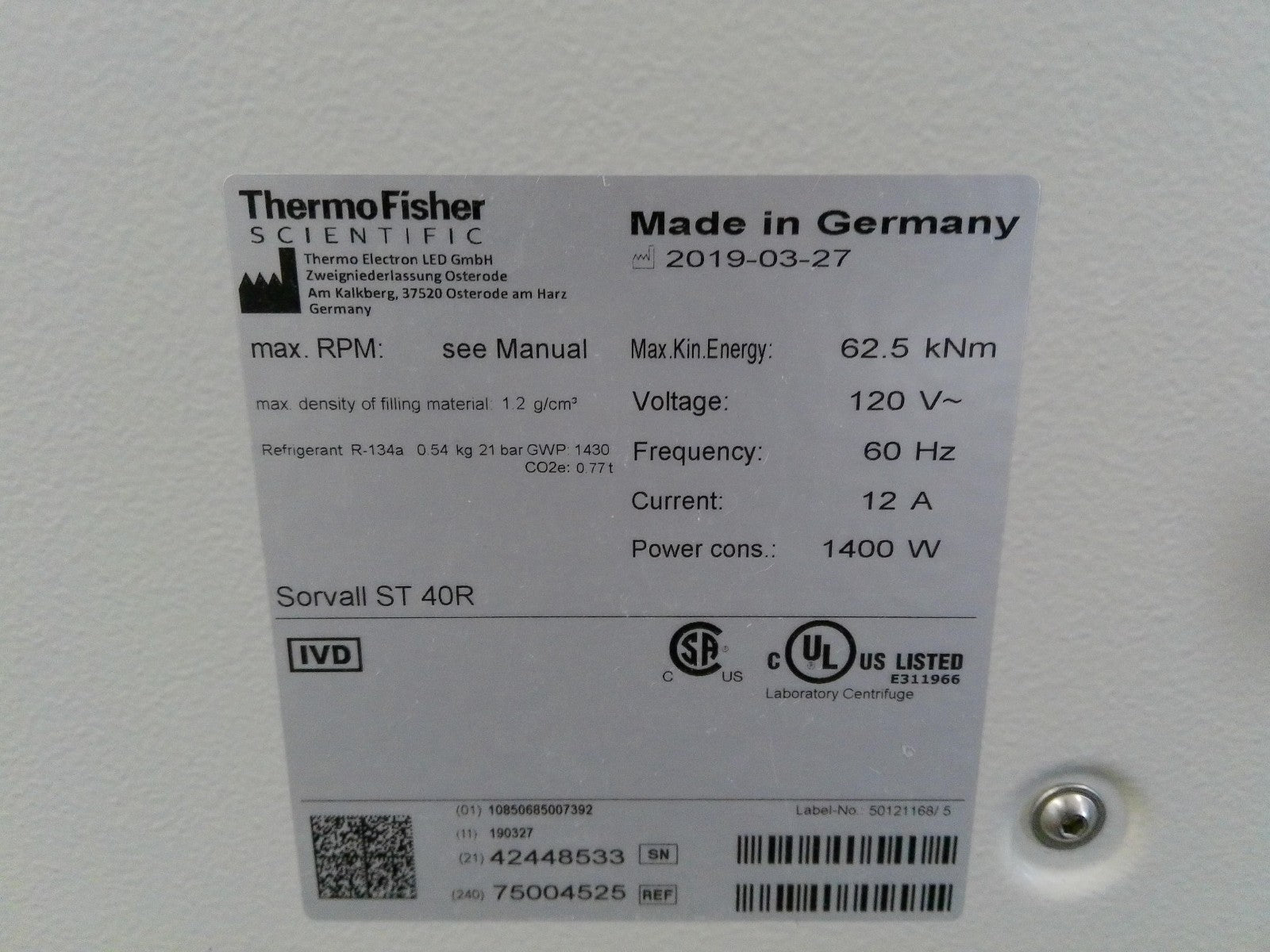 Thermo Sorvall ST 40R Refrigerated Benchtop Centrifuge w/Rotor (TX-1000), Buckets, Inserts (2019)