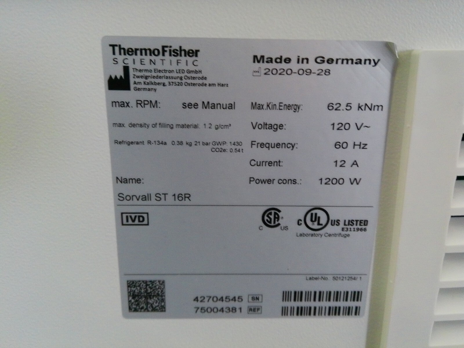 Thermo Sorvall ST16R Refrigerated Benchtop Centrifuge w/Rotor, Buckets, Inserts