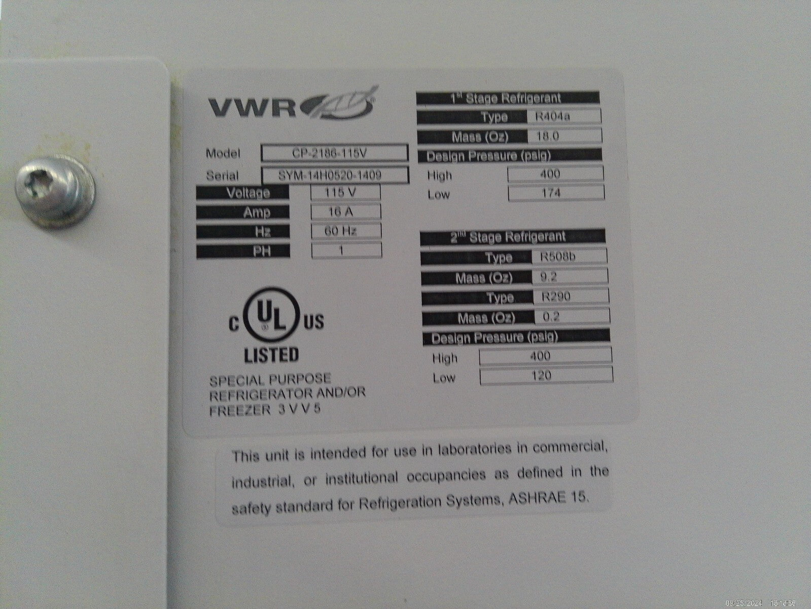 VWR CryoPro CP-2186-115V -80 C Ultra Low Freezer 23Cf FULLY TESTED