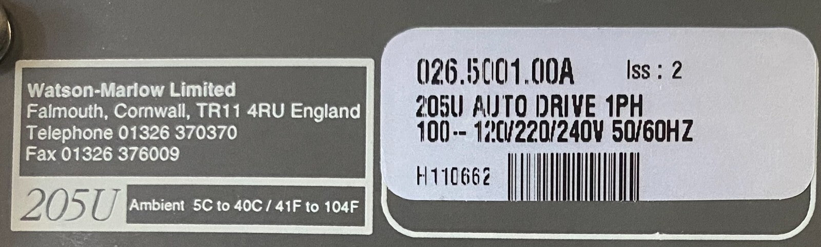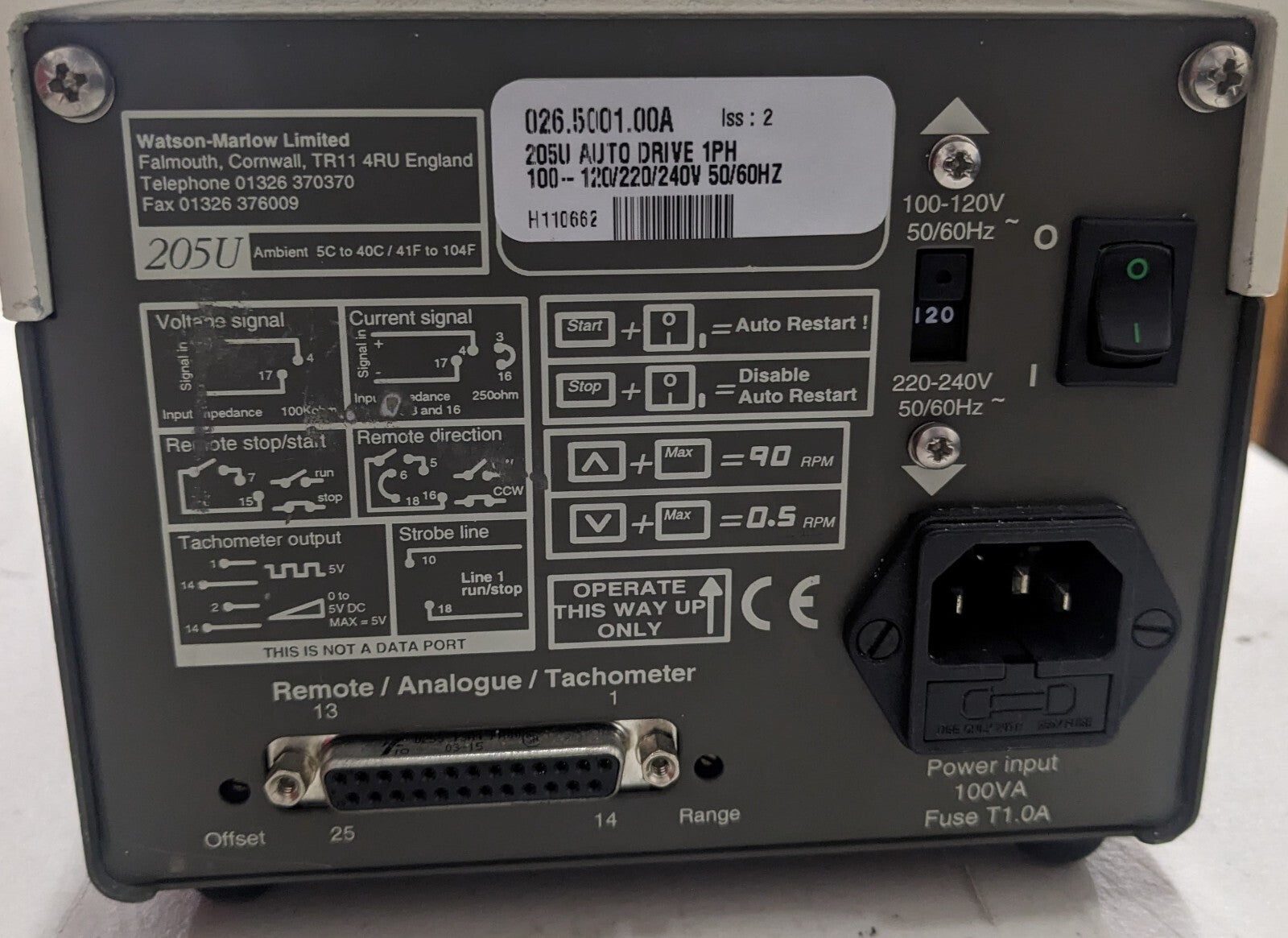Watson Marlow 205U Peristaltic Pump w/ 204CA 4 Channel 8 Roller Head 120v